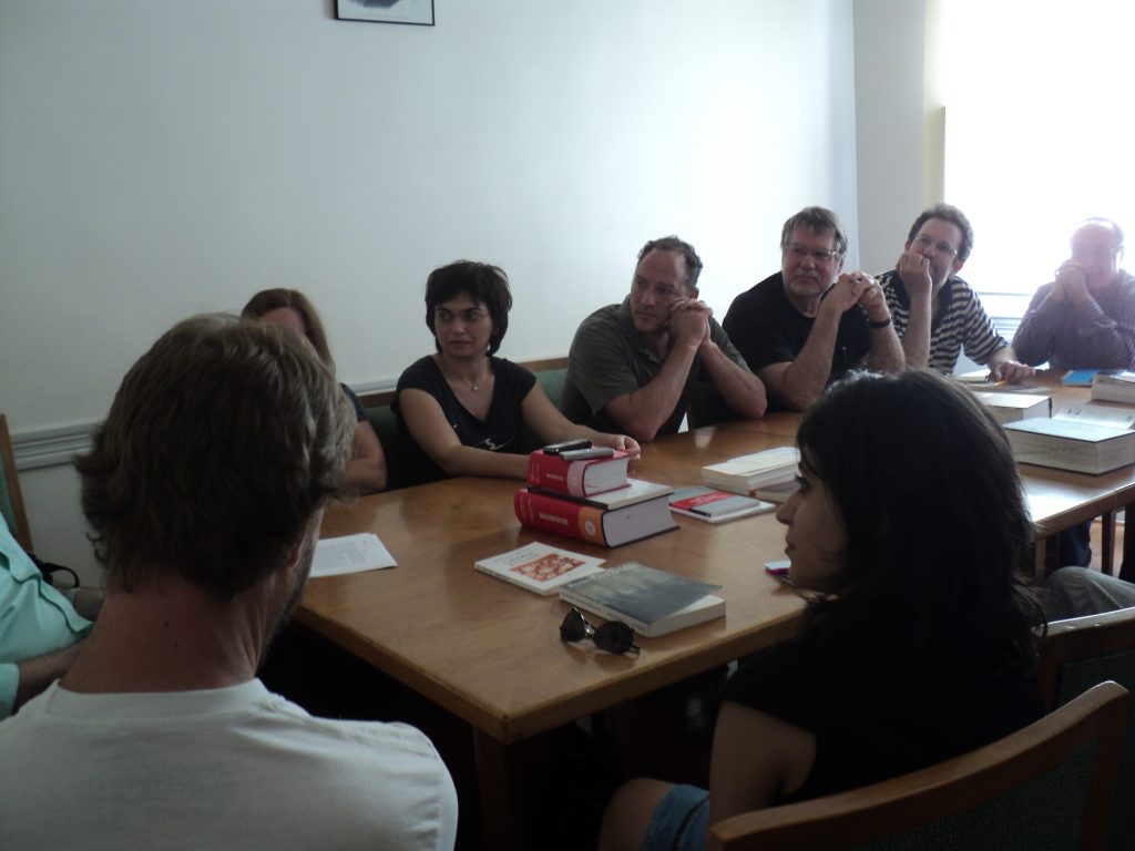- Group readings from translations done at the Workshop