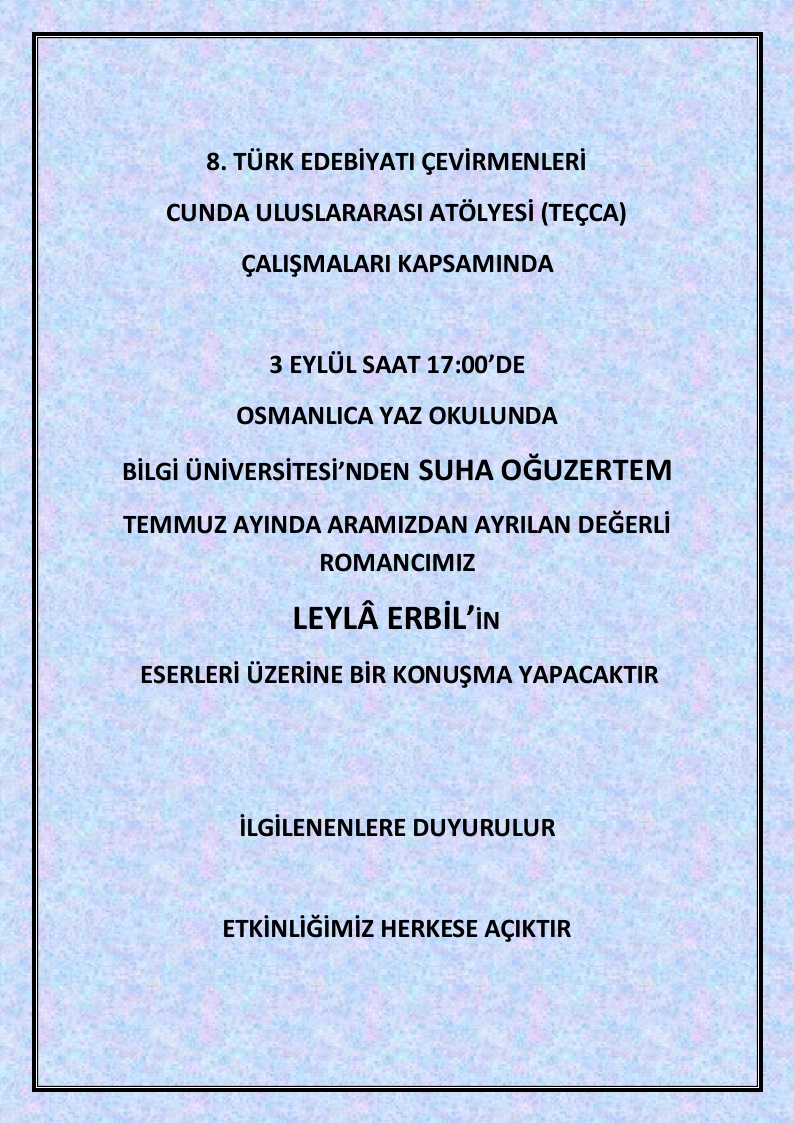 - Guest speaker Suha Oğuzertem on Leylâ Erbil‘s fiction