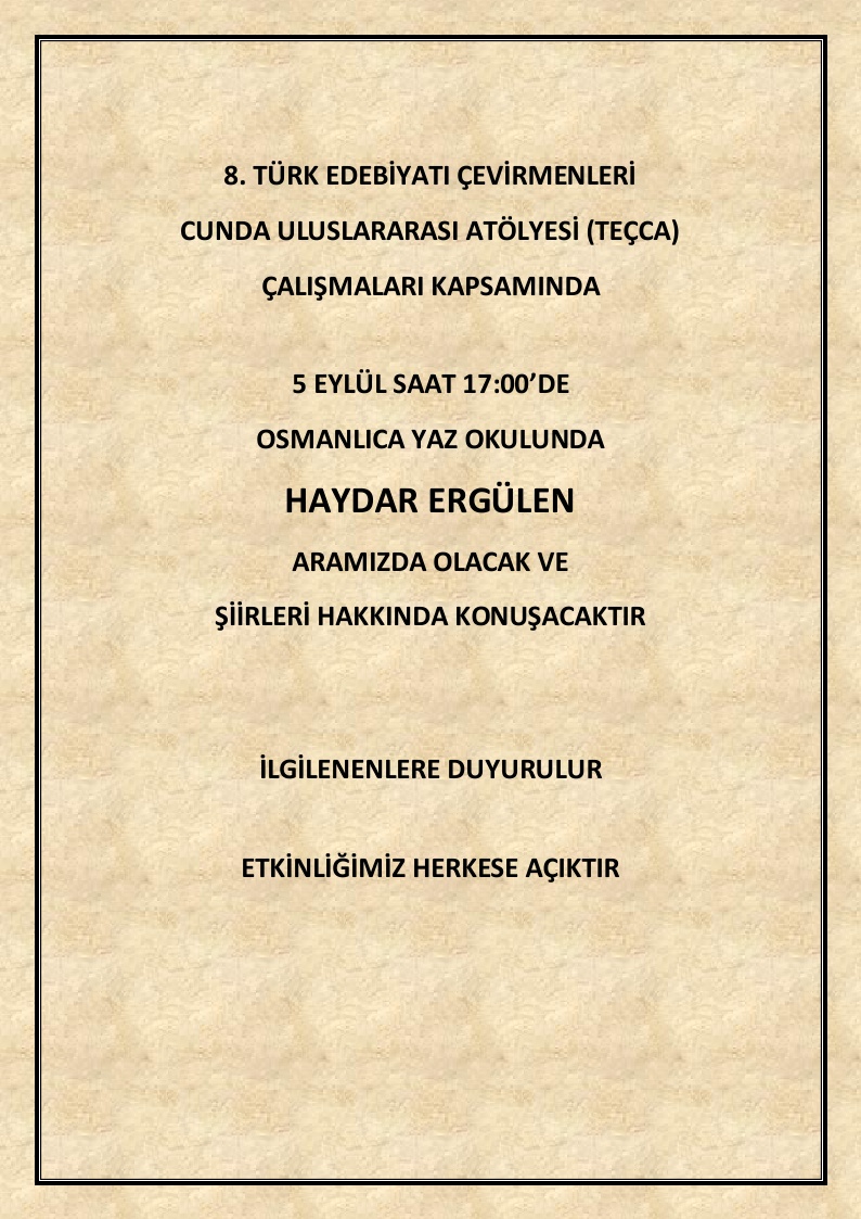 - Guest speaker Haydar Ergülen on his recent poetry